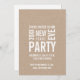 Informações gerais sobre o papel Kraft impresso - Efeito fotográfico impresso - Tipografia branca simples Convite de festas Véspera de ano novo moderno. Design de Elke Clarke ©2011. Para Ocasiões de Zazzle.
