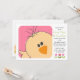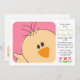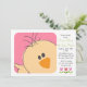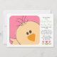 Um convite lunático que caracteriza um close up de um pintinho do bebê. O fundo branco embellished com tulipas. Aperfeiçoe para a páscoa ou um aniversário do primavera das crianças.
