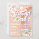 Celebre o marco do seu pequeno com este convite de aniversário "Groovy One- inspirado no estilo retrô. Com arco-íris pastel, margaridas sorridentes, borboletas e uma van hippie vintage, este design divertido traz paz, amor e diversão para a festa de primeiro aniversário do seu filho. Perfeito para celebrações com tema boho, retrô ou anos 60, este convite personalizável define o tom para um evento alegre e memorável. Os convidados vão adorar os detalhes caprichosos e as cores vibrantes que tornam este cartão especial.