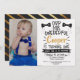 Procurando um Sr. bonito convite onederful da foto da aguarela do aniversário? Este design pôde ser direito para você. Caracteriza alguma mão escrita pias batismais do estilo, uma bandeira, dois laços e vários elementos decorativos, em um fundo feito a varredura do papel da aguarela. A parte traseira do convite é preta com uma linha diagonal teste padrão do ouro do falso. O mesmo design está igualmente disponível sem uma fotografia na loja. Este Sr. convite onederful da aguarela do primeiro aniversario está pronto para ser personalizado.