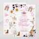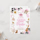 Prepare-se para uma celebração divertida com este convite de primeiro aniversário temático de rodeio western cor-de-rosa! Com botas de cowboy, chapéu, laço, violão, distintivo de xerife, cactos e detalhes em estampa de vaca, este design captura perfeitamente o charme rústico de uma festa de rodeio. Ideal para o primeiro aniversário de uma menina, combina ilustrações western divertidas com estilo moderno para criar um convite único e memorável. Personalize facilmente com os detalhes do seu evento e faça do primeiro rodeio da sua pequena cowgirl um dia inesquecível!