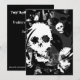 Beware dos espectros do crânio. Quando os crânios fantasmas espectrais aparecem da névoa de roda você deve funcionar… antes que esteja demasiado atrasada! Convite com um design customizável preto e branco para que você adicione seus próprios imagens, texto, e ideias. O texto pode facilmente ser mudado usando o modelo fornecido ou para clicar "personalizam-no" botão para fazer umas alterações mais adicionais. Envelope e porte postal de harmonização disponíveis. Os trabalhos artísticos originais criaram usando técnicas digitais por Jess Perry.