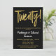 Um convite de festa de aniversário de casamento de 20 anos preto e dourado, elegante, simples mas impressionante. Texto com letra elegante no topo e texto dourado abaixo com o nome em branco destacado