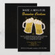 Convide os rapazes para uma festa de despedida de solteiro sofisticada com este convite moderno preto e dourado. Com um fundo elegante com respingos de tinta dourada e duas canecas de cerveja brindando, este é o convite perfeito para uma despedida de solteiro, festa do noivo ou fim de semana agitado em torno de cervejas e diversão. Texto totalmente editável para sua data, hora e local.