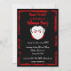 Quadro em vermelho-sangue, com um fundo preto este convite caracteriza a cara assustador de um vampiro e as palavras do "partido Dia das Bruxas" no vermelho.