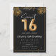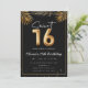 Doce 16 Sexto Balão de Aniversário com folhas tropicais ouros Convite de festas Adorável doce 16 convites de festas de aniversários num design de balão preto e dourado 16 com folhas tropicais ouros. Personalize com os detalhes da sua festa e envie um e-mail para a família e amigos convidando-os a comemorar seu 16° aniversário!