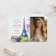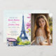 Sweet 16 Birthday Watercolor Floral Eiffel Foto Convite