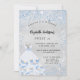 Para um doce elegante 16, 16 anos. Um fundo metálico falso prateado. Decorado com poeira azul esfolada e um vestido para uma festa de maravilha do inverno. Personalize e adicione um nome, idade e detalhes da festa. O nome é escrito com um script de estilo manuscrito