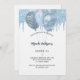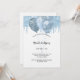 Um fundo branco. Decorado com pingos de brilho azul claro, aparência de pingar tinta e balões. Personalize e um nome e detalhes da festa.