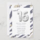 Azul bonito com um design prateado de 16 balões com 16 convites de aniversário. Adicione os detalhes da sua festa a este convite de aniversário, perfeito para comemorar o seu 16º aniversário.