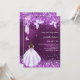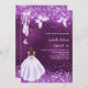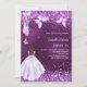 Para um elegante aniversário de 16 anos. Um fundo púrpura incolor. Decorado com confete, calçados de dedos de bailarina, borboletas e uma garota de vestido. Personalize e adicione um nome, idade/texto e detalhes da parte. O nome é escrito com um script de estilo manuscrito