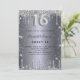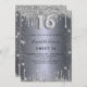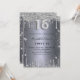Um convite moderno, na moda e glamouroso para uma festa de aniversário Doce 16, 16. Um fundo com aparência de prata falsa, decorado com poeira brilhante. Personalize e adicione o seu nome e detalhes da festa. O número 16 é escrito com uma fonte de estilo de balão, script.
