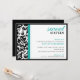 Este doce 16 convite moderno apresenta damasco preto e branco, uma borda preta e uma faixa de cor ousada. Adicione suas informações usando o formulário modelo. Use o recurso "Personalizar" para alterar a fonte, o layout e as cores.