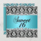 Doce 16 doces Dezesseis Festas de aniversário Blue Teal Aqua Damask Silver Pearl Black Lace Elegant Classy Todas as vezes apenas muda de idade. Convites de aniversário de festa Modelo
