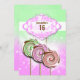 Um moderno encontra um design do vintage de três pirulitos do bastão de doces no rosa pastel, verde castanho chocolate, pastel do peppermint, os redemoinhos alaranjados e brancos da melancia estalam contra um fundo rosa pálido e verde bonito enchido com as estrelas e os splatters. PERSONALIZE-O: Mude o fraseio para serir sua ocasião especial; mova os modelos para toda a posição preferida; mude a cor/estilo e o tamanho da pia batismal e transfira arquivos pela rede suas próprias imagens originais. TAMANHOS DO CONVITE: Escolha dos convites diferentes do tamanho e os modelos serão aplicados automaticamente a esse que você escolhe. IDEAL PARA: Meninas que comemoram seu 16o doce com um tema do canto dos doces. São ideais para Bachelorette/nupciais/quinceanera e festas de casamento demasiado.