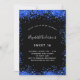 Uma garota e uma moda Doce 16, 16. convite de aniversário. Um fundo preto chic. Decorado com brilho azul real, brilhos. Personalize e adicione um nome e detalhes da parte. O nome é escrito com um script de estilo manuscrito.