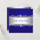 Trim de Flor Prateado no Convite para Corações de Amor Floral Azul Cobalto, Doce 16 Festas de aniversário. Personalize com seus próprios detalhes. RSVP correspondente disponível.