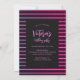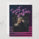 Comemore um aniversário de um marco em estilo com nosso Convite de aniversário Doce 16 Rosa Neon Glitter. Esse convite elegante apresenta listras rosa luxuosas sobre um fundo preto elegante, criando um olhar festivo e sofisticado. A frente do convite mostra um grande "Doce Dezesseis" escrito em um belo roteiro escrito à mão, junto com uma foto. No lado oposto, você encontrará todos os detalhes essenciais do convite. O design é na moda e impactante, fazer perfeito para uma celebração memorável. Além disso, o texto é totalmente personalizável, permitindo que você personalize cada detalhe para corresponder a sua parte exclusiva.
