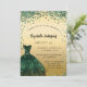 Um convite moderno, na moda e glamouroso para uma doce festa de aniversário 16, 16. Na frente: Um fundo de ouro falso com um confete verde, um vestido verde esmeralda. O nome é escrito com um moderno estilo escrito à mão. Personalize e adicione os detalhes da sua festa.