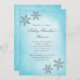 Um convite de aniversário temático do doce 16 do inverno à moda. Caracterizando ilustrações do floco de neve do brilho da faísca em um fundo do azul da cerceta. Uma grande maneira de convidar seus convidados a uma festa de aniversário do doce dezesseis do país das maravilhas do inverno. O design é ilustrações/gráficos impressos plano - BRILHO NAO REAL.