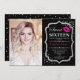 Convite Doce 16 Foto Negra Branca de Prata Rosa de Anivers
