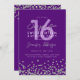 Convite Doce 16 - Glitter de Prata Roxo Confetti