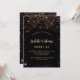Para um doce elegante 16, 16 anos. Um fundo na moda preto. Decorado com pó de ouro falso roxo e poeira de luz ouro. Personalize e adicione um nome, idade e detalhes da festa. O nome é escrito com um script de estilo manuscrito