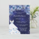 Um convite moderno, na moda e glamouroso para uma doce festa de aniversário 16, 16. Um fundo de marinho com brilhos falso prateados, um vestido e rosas azuis, florais. A cor de fundo azul é irregular. O nome é escrito com um moderno estilo escrito à mão. Personalize e adicione os detalhes da sua festa.