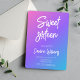 Celebre esse marco em um estilo moderno e ousado com esse convite de Sweet 16 com gradiente de neon. Com uma mistura vibrante de tons roxos, rosa e azul, esse design é perfeito para uma celebração de aniversário moderna e inesquecível.