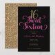 Convite Doce 16 Preto Rosa Quente Dourado Brilho Aniversár