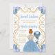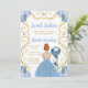 Este doce 16 convite apresenta uma elegante estrutura de ouro, uma bela princesa de cabelo vermelho e um vestido azul empoeirado, flores e um balão. Isto é perfeito para uma doce festa de aniversário de dezesseis.