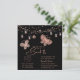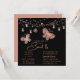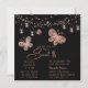 O Sweet 16 Rosa Dourado Butterfly Chic Modern Birthday Invances apresenta elegantes borboletas de ouro rosa com luzes de cordas em um fundo preto com suas informações de Convite 16 Doce abaixo. Personalize editando o texto nas caixas de texto. Projetado para você por ©Evco Studio www.zazzle.com/store/evcostudio