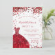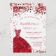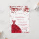 Um convite moderno, na moda e glamouroso para uma doce festa de aniversário 16, 16. Um fundo branco com brilhos, um vestido vermelho. O nome é escrito com um moderno estilo escrito à mão. Personalize e adicione os detalhes da sua festa.