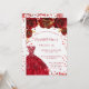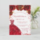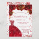 Um convite moderno, na moda e glamouroso para uma doce festa de aniversário 16, 16. Um fundo branco com brilhos, um vestido vermelho e rosas vermelhas, florais. O nome é escrito com um moderno estilo escrito à mão. Personalize e adicione os detalhes da sua festa.