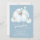 Doce abóbora está no caminho o convite do chá de fraldas com abóboras azuis-claras adornadas com arcos azuis em fundo azul.