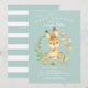 Adorável convite para bebês com coelhinho doce rodeado por uma coroa em fundo verde para um chá neutro em termos de gênero. Sacudir nosso convite para ver uma coordenação de volta para um toque especial extra.