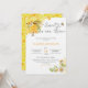 Bem-vindos ao seu pequeno pacote de alegria com este encantador convite para chás de fraldas. A design de mel doce apresenta uma abelha e flores amarelas e brancas alegres. Perfeito para uma comemoração de primavera ou verão!