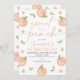 Celebre o primeiro aniversário do seu pêssego com este adorável convite para primeiros aniversarios de meninas. Mostrando um charmoso design floral e de pêssego, definindo o tema perfeito para o dia especial de sua garotinha.