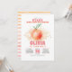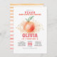 Fruta de pêssego e convites de aniversário de configuração de brilho dourado