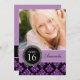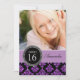 Feminino, divertimento, bonitos, contudo sofisticado e elegante, estes preto personalizado e convite de festas roxo do doce dezesseis do damasco do brilho com sua foto são a maneira perfeita de convidar seus convidados ao partido do doce dezesseis da sua filha. Nota: o brilho é um efeito IMPRESSO da foto. Design por Elke Clarke©.