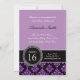 CONVITE DOCE DEZESSEIS, BRILHO ROXO, DAMASCO PRETO