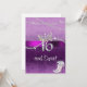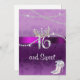 O belo convite dos Dezesseis tem um fundo úmido roxo com fita de cetim roxo bonito, coroa princesa de diamante cintilante, cordas de diamante penduradas, e saltos elegantes e giros altos.