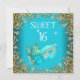Máscara Máscara Doce Dezesseis Aniversário Imagem Dourada Teal Azul Convite de Aniversário Festa Elegante. Zizzago