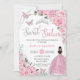 Convite Doce Dezesseis princas Florais Rosa Prateadas Aniv
