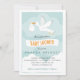 Um convite cegonha-temático neutro do chá de fraldas do género bonito que caracterize um esquema de cores azul, alaranjado e branco bonito da cerceta. Uma cegonha feliz desliza levando um pacote pequeno novo de alegria enquanto voa contra um céu azul do aqua macio que esteja pontilhado com nuvens inchado. Um símbolo tradicional é dado um olhar actualizado nesta tomada completamente moderna no tema com ilustração original e tipografia na moda, lunática.