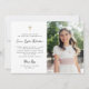 Este convite religioso simples e na moda, preto e branco da Primeira Comunhão apresenta tipografia de escrita caprichosa, estilo vintage e uma cruz falsa de ouro com a sua fotografia. Um olhar elegante e clássico minimalista que ainda é único e contemporâneo e também neutro em termos de gênero, para um menino ou uma menina.