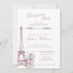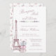 Bonjour Bébé! Este charmoso convite para chás de fraldas de aquarela captura a elegância de uma celebração parisiense. Apresentando uma ilustração macia da Torre Eiffel, delicadas imagens de lavanda, macarões azuis pastel e cor-de-rosa amarrados com um arco doce, e fontes elegantes, este design dá o tom para uma festa de inspiração na moda francesa. O texto "Bonjour Bébé" acrescenta um toque francês caprichoso, fazer perfeito para acolher um pouco com talento. Ideal para um tema de chá de fraldas que é romântico e chique, este convite é totalmente personalizável para os detalhes do seu evento.