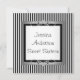 Convite de aniversário do doce dezesseis. Todos os eventos, celebrações, anúncios e convites de festas de aniversários. Apropriado para todos os aniversários e eventos da idade. Rsvp está disponível em cima do pedido no estilo similar. Listras preto e branco bonitas e do divertimento com quadro metálico de prata do olhar com guarnições metálicas ornamentado da jóia de pedra de prata e preta. Personalize ao estilo da mudança e ao tamanho da pia batismal para personalizar.
