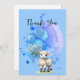 Envie uma nota sincera de agradecimento com este elegante cartão de agradecimento simples 5x7, parte da nossa coleção de chá de bebê Sweet Little Lamb. Com um suave cordeiro em aquarela cercado por delicadas hortênsias azuis e balões pastel, este cartão adiciona um toque doce e atencioso à sua gratidão.