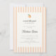 Um convite para chá de fraldas do tema "doce pequeno pêssego", com um fundo de faixa pastel e uma opção de fonte de script de safra. Para uma linha premium texturizada, escolha o tipo de papel "Laid".